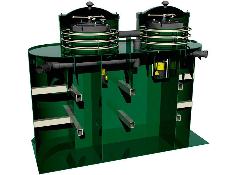 Очищенная вода удаляется в напорном режиме при помощи дренажного поплавкового насоса Pedrollo (пр-во Италия) , расположенного в дополнительной камере станции (рассчитано на условия, когда невозможен отвод очищенной воды в самотечном режиме).